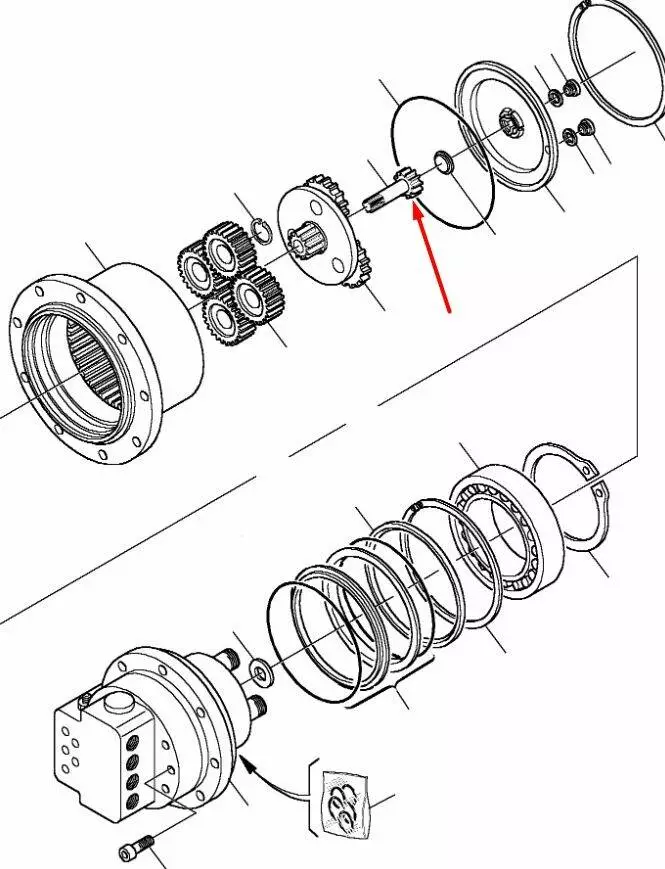 Вал-шестерня в редуктор ходу CASE CX16B