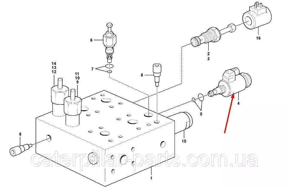 Клапан-соленоїд гідросистеми на навантажувач Volvo L50, L60, L70, L90, L110, L120, L150, L180, L220, L330